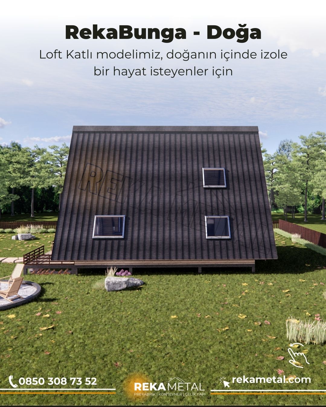 RekaBunga – Özgür 88 m2, 1 + 1 Tek katlı modelimiz, doğanın içinde izole bir hayat isteyenler için tasarlandı.