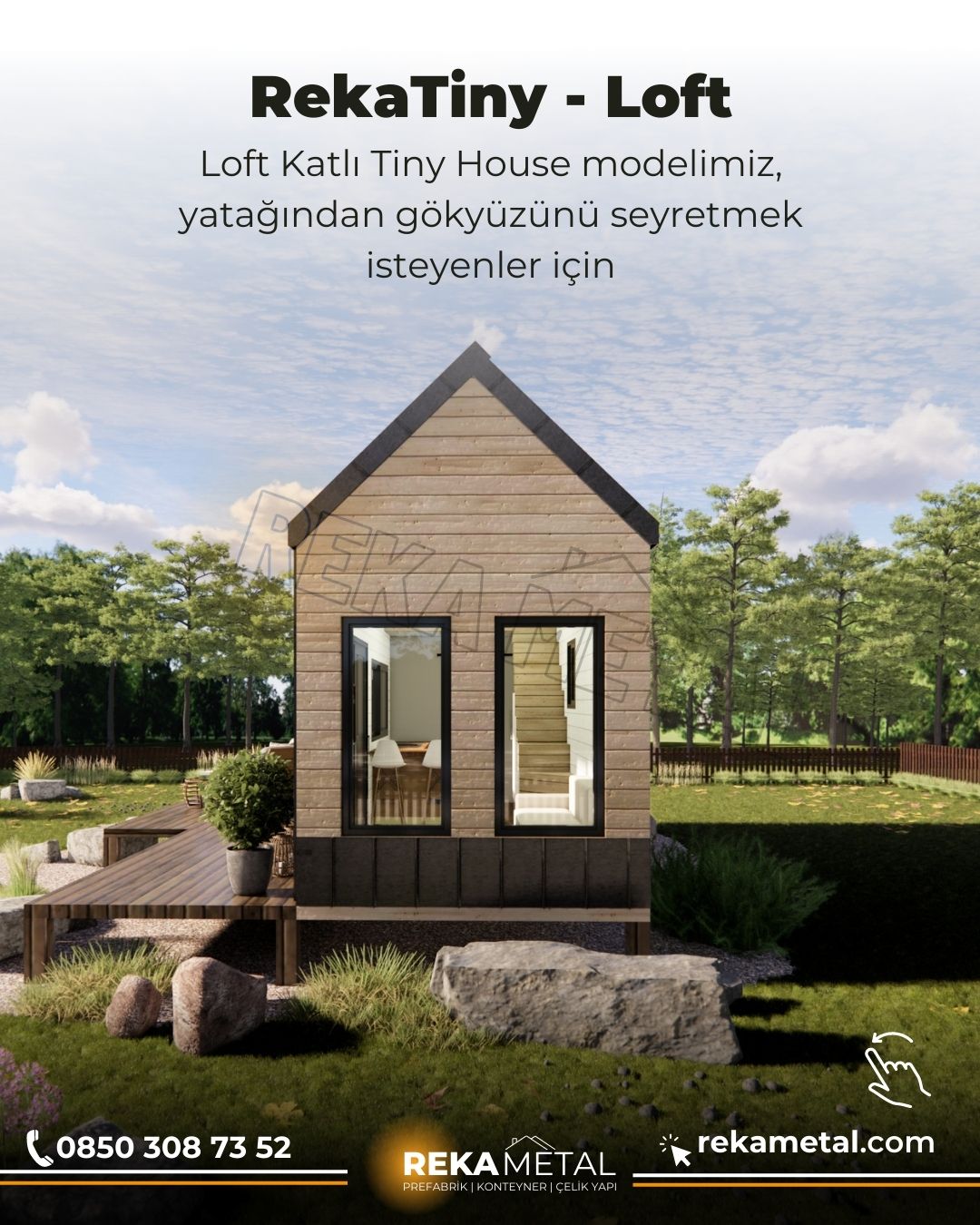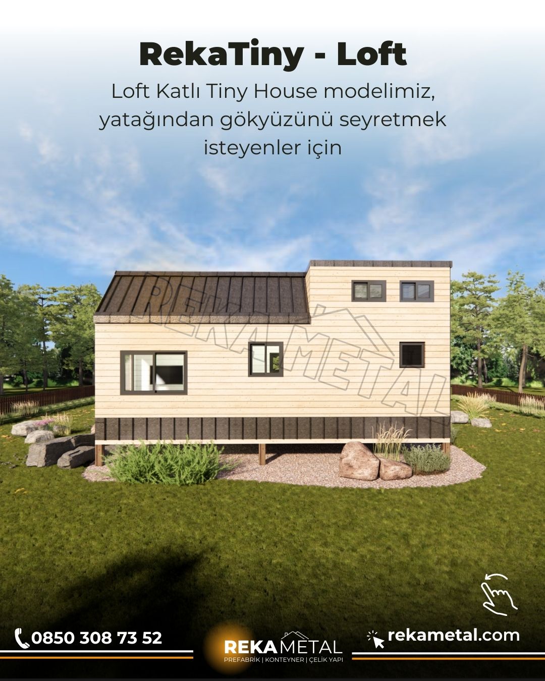 RekaTiny – Loft 2 m2, 1 + 1 Loft katlı modelimiz, yatağından gökyüzünü seyretmek isteyenler için tasarlandı.